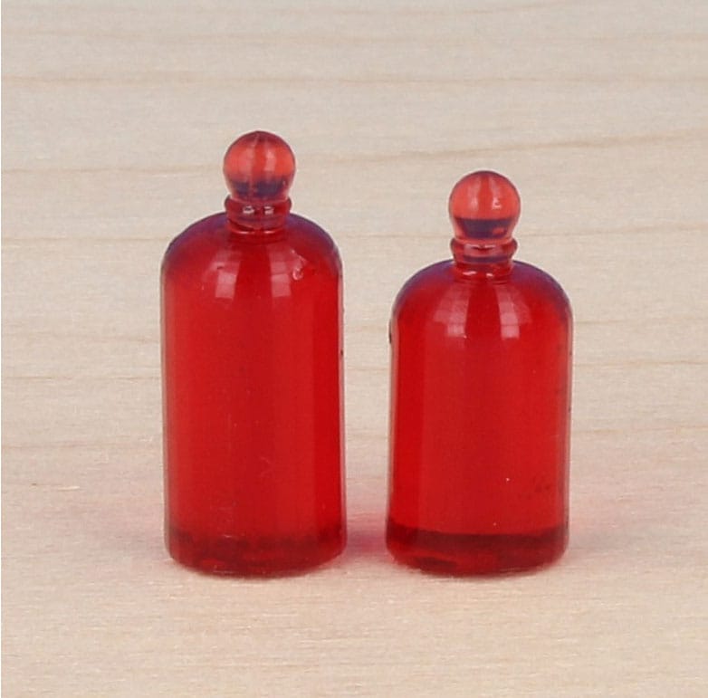 Deux bocaux. Deux bocaux rouges de tailles différentes. Hauteur du petit 2 cm et du grand 2,3 cm.