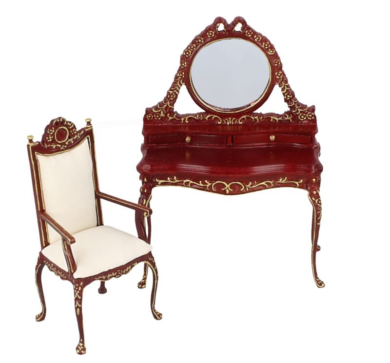 Chambre à coucher complète de collection composée d'un lit, d'une armoire, de deux tables de nuit et d'une coiffeuse avec sa petite chaise.