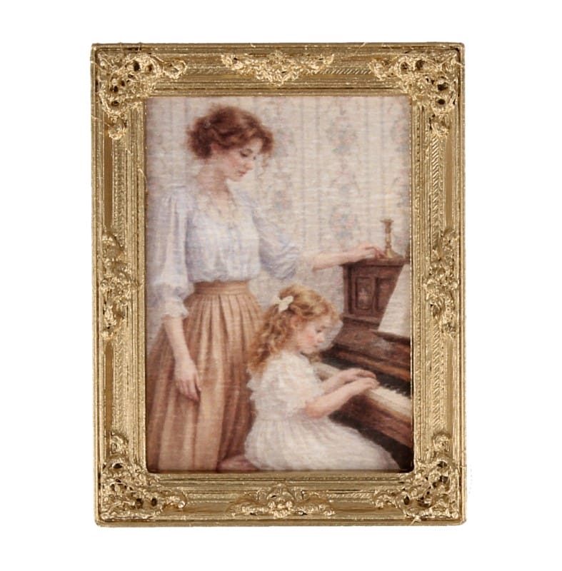 Reproduction miniature d’un tableau d’une leçon de piano.