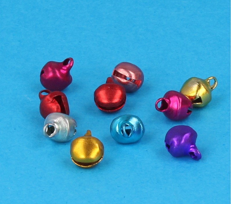 Lot de 10 grelots miniatures pour décoration. Couleurs assorties.